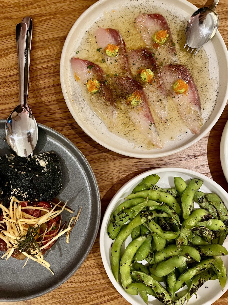 We felt like eating out and trying a new place, so we opted for Asian cuisine. That's how we ended up at Tokki in Surry Hills on a Tuesday evening, which was surprisingly lively inside. The atmosphere is very pleasant, with an authentic yet modern fusion of Japanese and Korean styles. We chose the 'Feed Me' tasting menu at $69 per person, which was very affordable and included a selection of 8 small and large dishes ranging from meat to fish to vegetables. Everything was excellent and very well executed, from the cooking to the seasoning, making simple ingredients complex, which is exactly why we enjoy dining out for the experience. Congratulations to the chefs, and also to the bartender for the delicious cocktails, and thanks to Tomàs for the service. We had a great time and will definitely be back, and will recommend around.