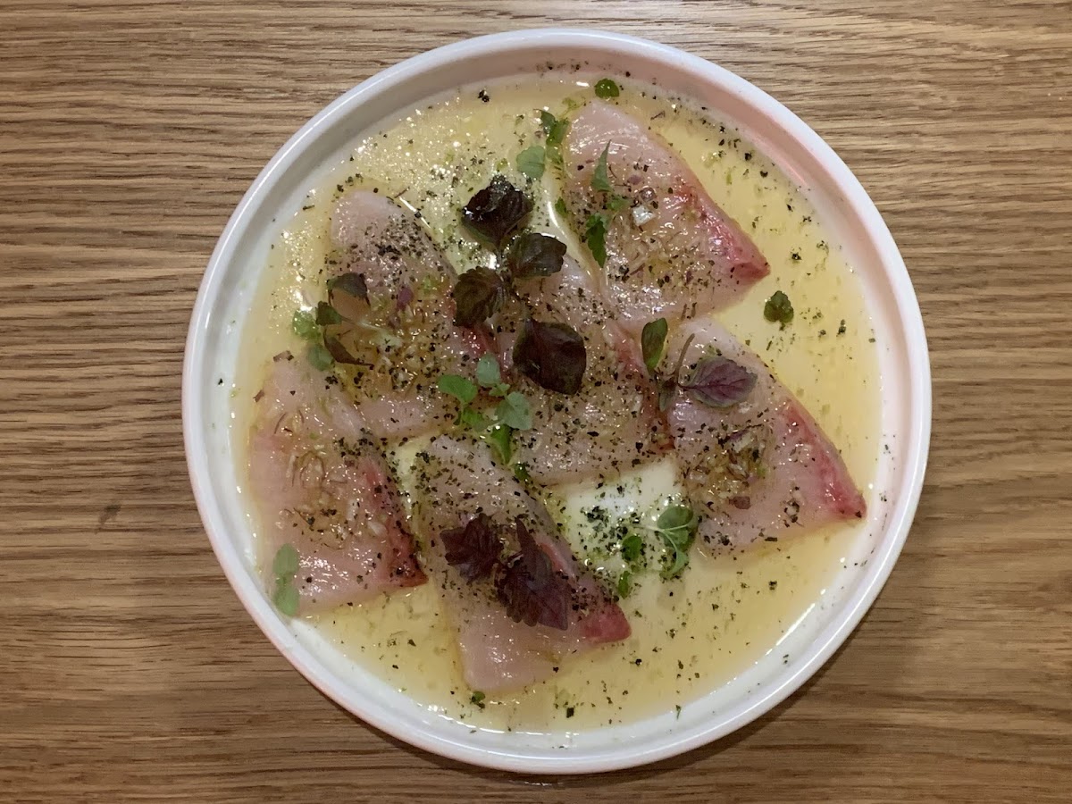 This food (especially the sauces on/with each dish) was phenomenal. We definitely found a new restaurant that we'll return to many times. The charcoal flavour imbued in the dishes from that particular section of the menu was fantastic. The broccolini was my favourite but every single dish was something that I could eat over and over. The music was good and punchy but the sound system suffers because of too much concrete and hard surfaces. Cocktail menu and bartender were both on point